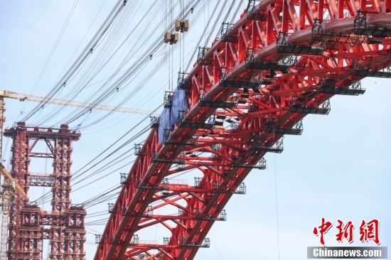 主拱合龙后的乌江特大桥。(中新社记者 瞿宏伦 摄)