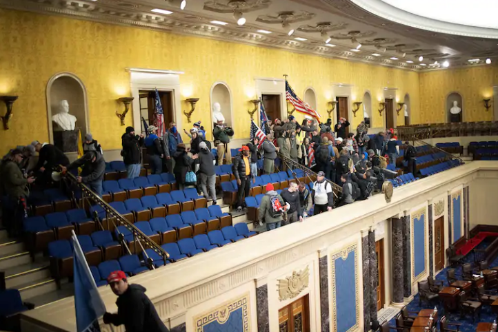 当地时间2021年1月6日,美国国会山骚乱现场图。