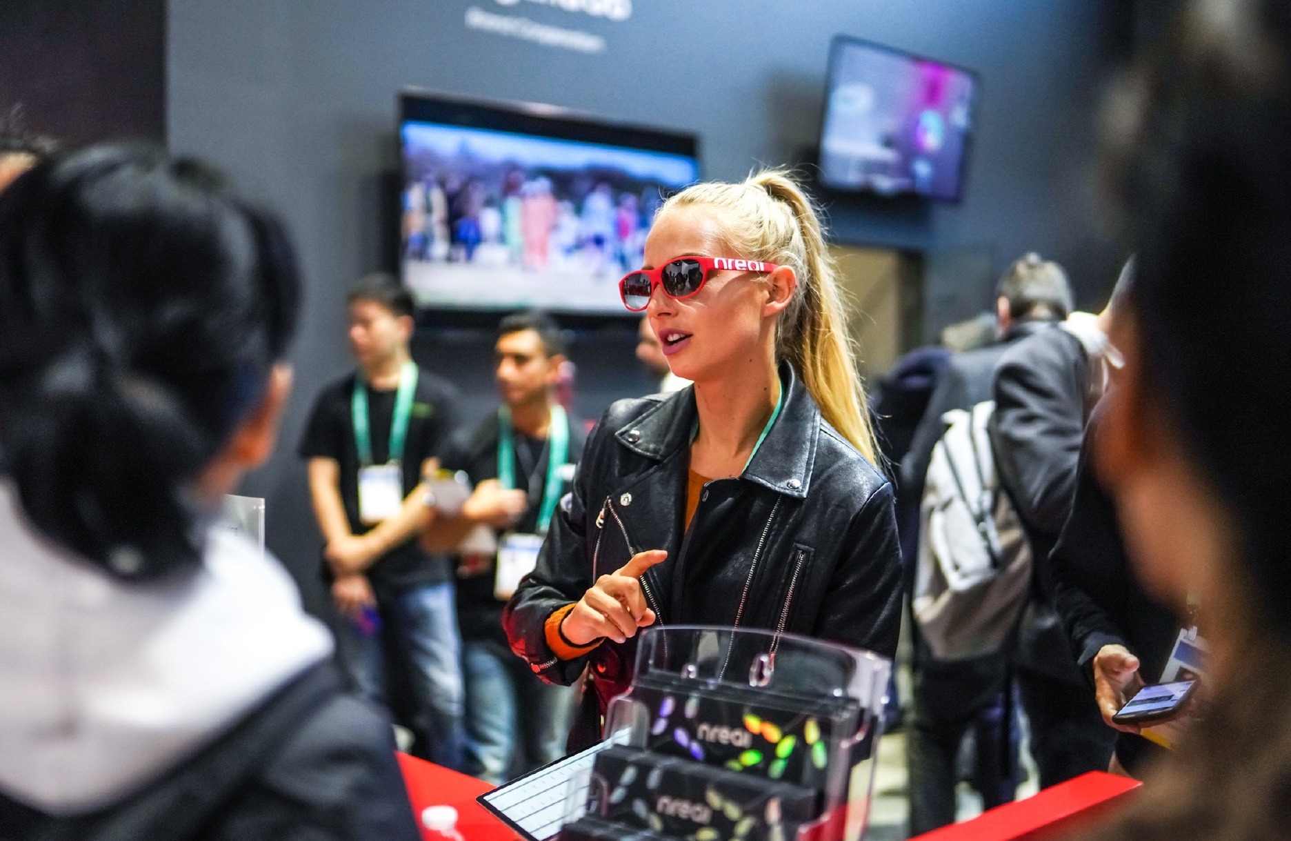2017年,在北京一家孵化器里,六七人的小团队租下了几个工位。经过7次迭代,2019年,在海外市场,一款重量不到100克的全球首款眼镜形态全功能AR眼镜上市了。在同年的CES展上,Nreal的展台被围得水泄不通。不少人并没有想到,这个重量和售价只有同行几分之一的“黑科技”眼镜来自一家中国公司。此后3年间,Nreal先后登陆了日、韩、英、美等多个国家,与近十家国际一线运营商达成合作。