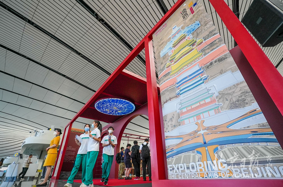 8月16日,“读城——探秘北京中轴线”主题展览在北京大兴国际机场航站楼举行开幕仪式。本次展览以“探秘中轴线”作为主题,以深度挖掘古都北京的历史文化渊源,最大限度地释放中华传统文化的价值、影响力和感召力为切入点,展现中轴线的历史、美景、文化。