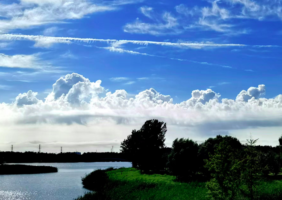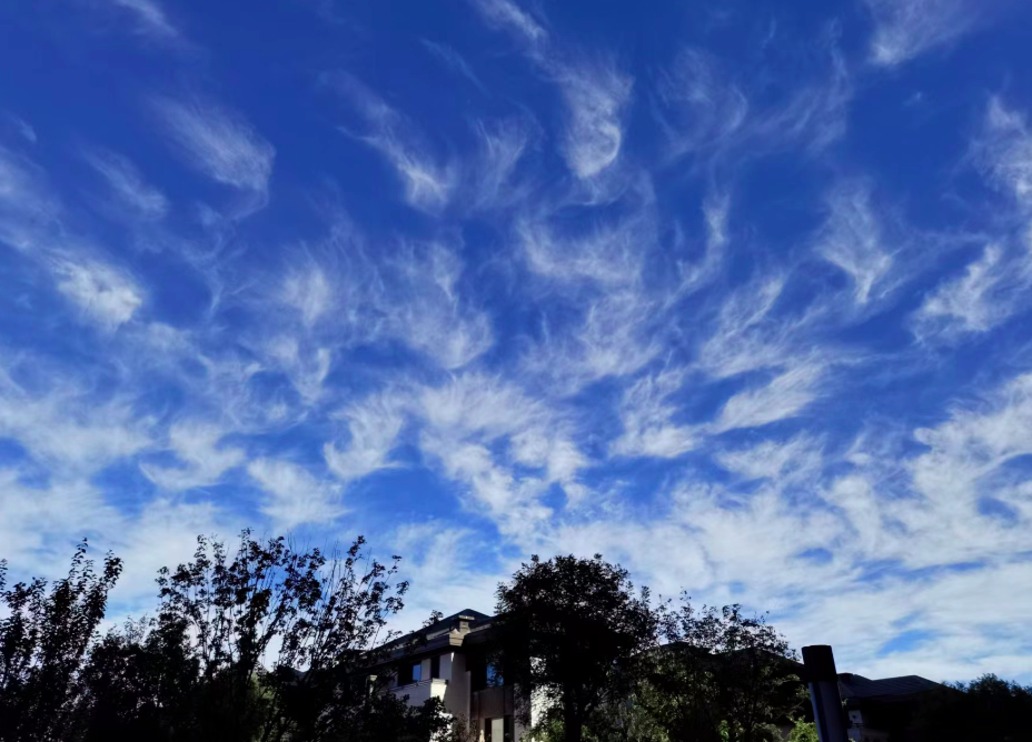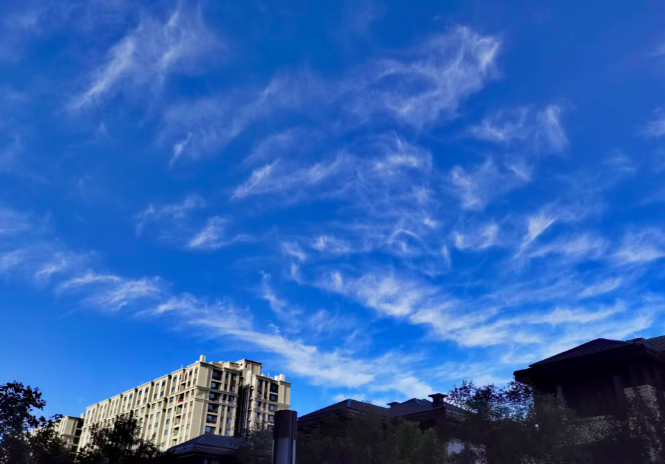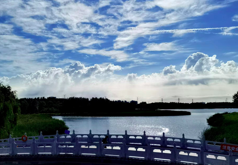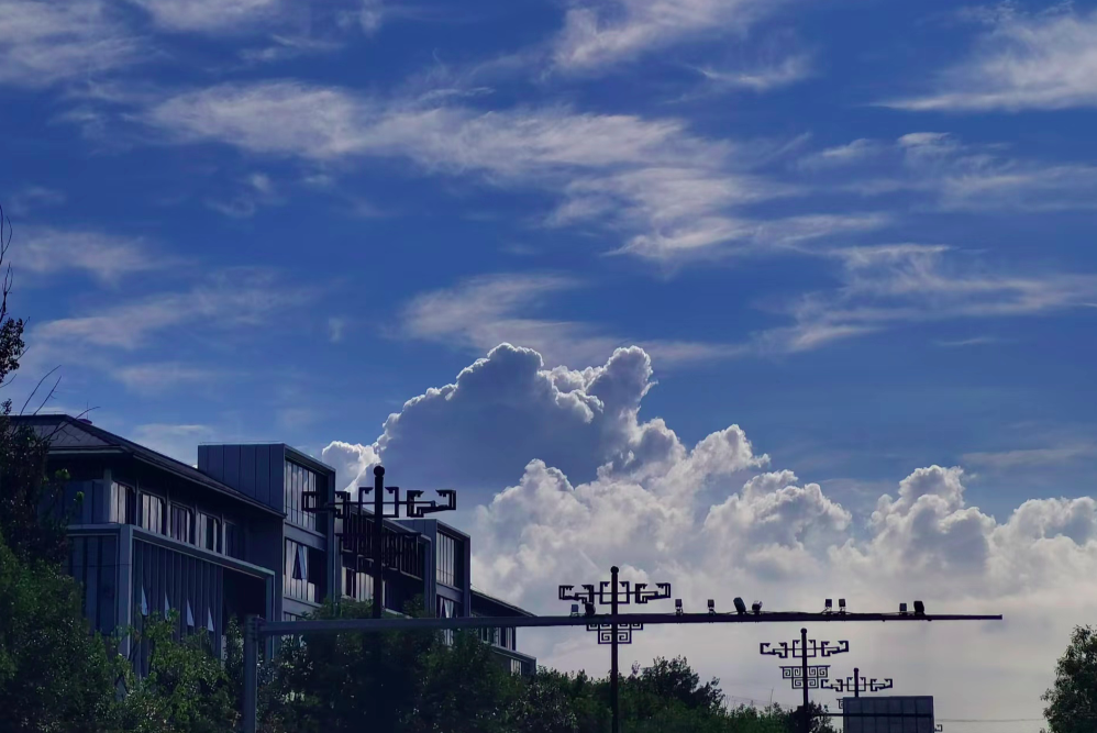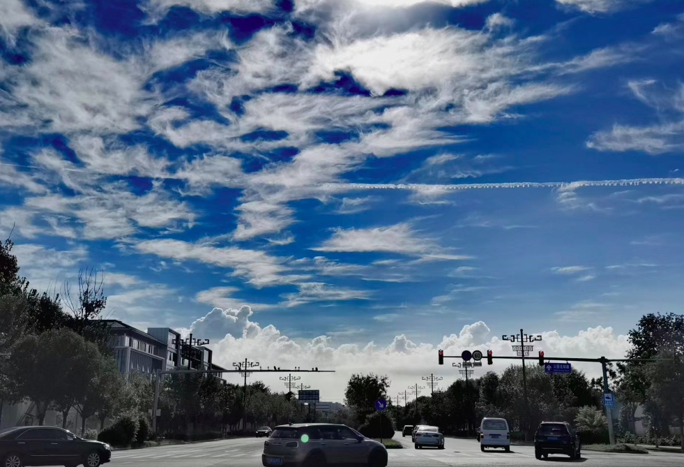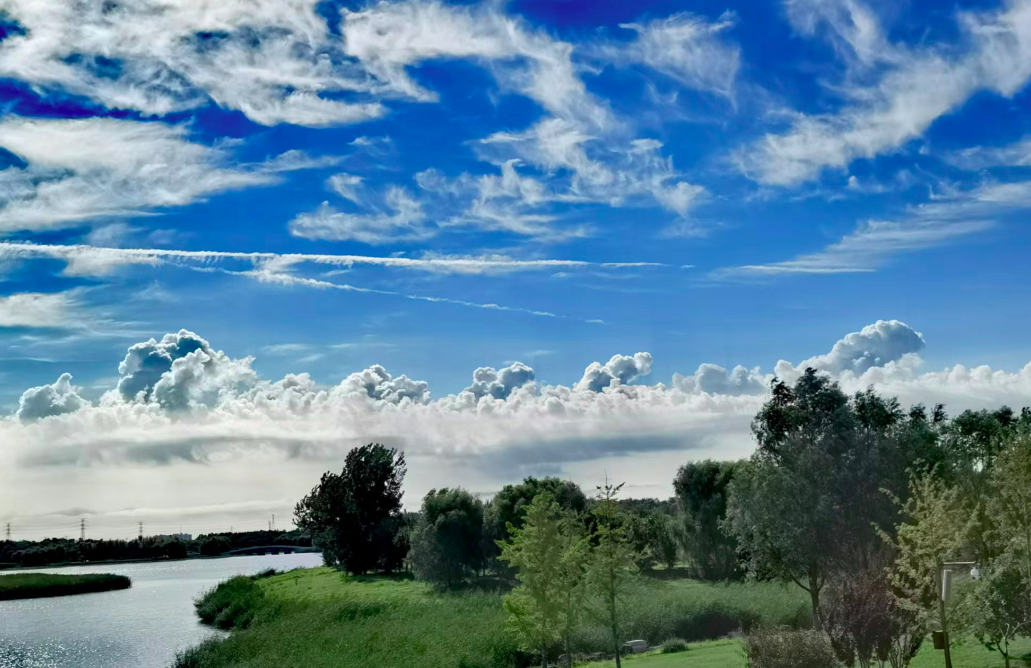 今天(8月16日)上午,北京立秋后的天空成为一块巨大画布,大自然以风作笔,以云作画,描绘出一幅幅绝美画卷。从大兴南海子公园附近观看,天空的这端漫天飞“羽”,天空的那端“雪山”连绵,中间还有“直线”穿插其中,信马由缰,自由挥洒,在向人们宣告:立秋的北京有多美!