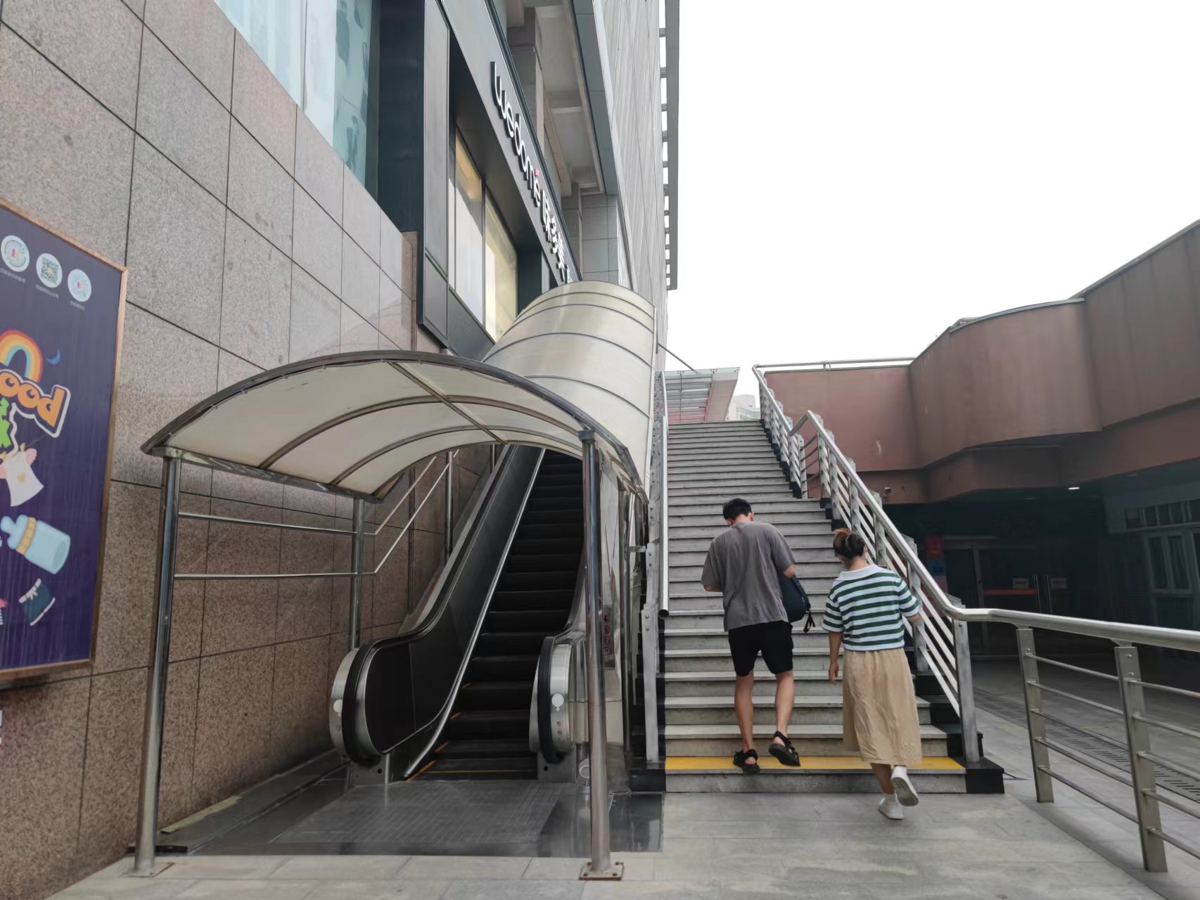 从地铁8号线的木樨园站A1口出来,前往地面的路上同样有一部扶梯,周围还贴心设置了遮阳棚,然而市民反映,该扶梯同样有很长时间没有开放了。记者环顾四周,也没有在扶梯周围发现停运通知及相关说明。由于旁边就是一家商场,人流量也不少,大家只能走楼梯出行。