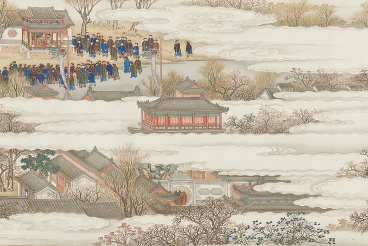 清乾隆十六年,宫廷绘《万寿图卷》第二卷“川至迎长”中的万寿寺,故宫博物院藏。