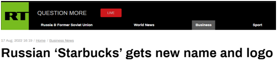 继麦当劳之后,俄星巴克门店也有了“新名字”?据“今日俄罗斯”(RT)17日援引俄“莫斯科24”电视台报道,俄罗斯境内的星巴克(Starbucks)咖啡连锁店将以新名称“Stars Coffee”恢复在俄运营。RT等多家俄媒报道称,星巴克5月宣布决定退出俄罗斯市场后,俄罗斯说唱歌手、企业家提玛蒂7月宣布与俄企业家宾斯基合作收购和接管星巴克在俄所有资产。