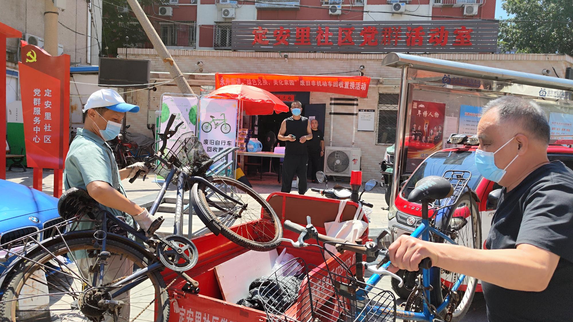 居民朋友们积极行动起来,叫上家人、邻居一起,将废旧自行车、三轮车推来置换,定安里等社区还为行动不便居民提供上门置换服务。