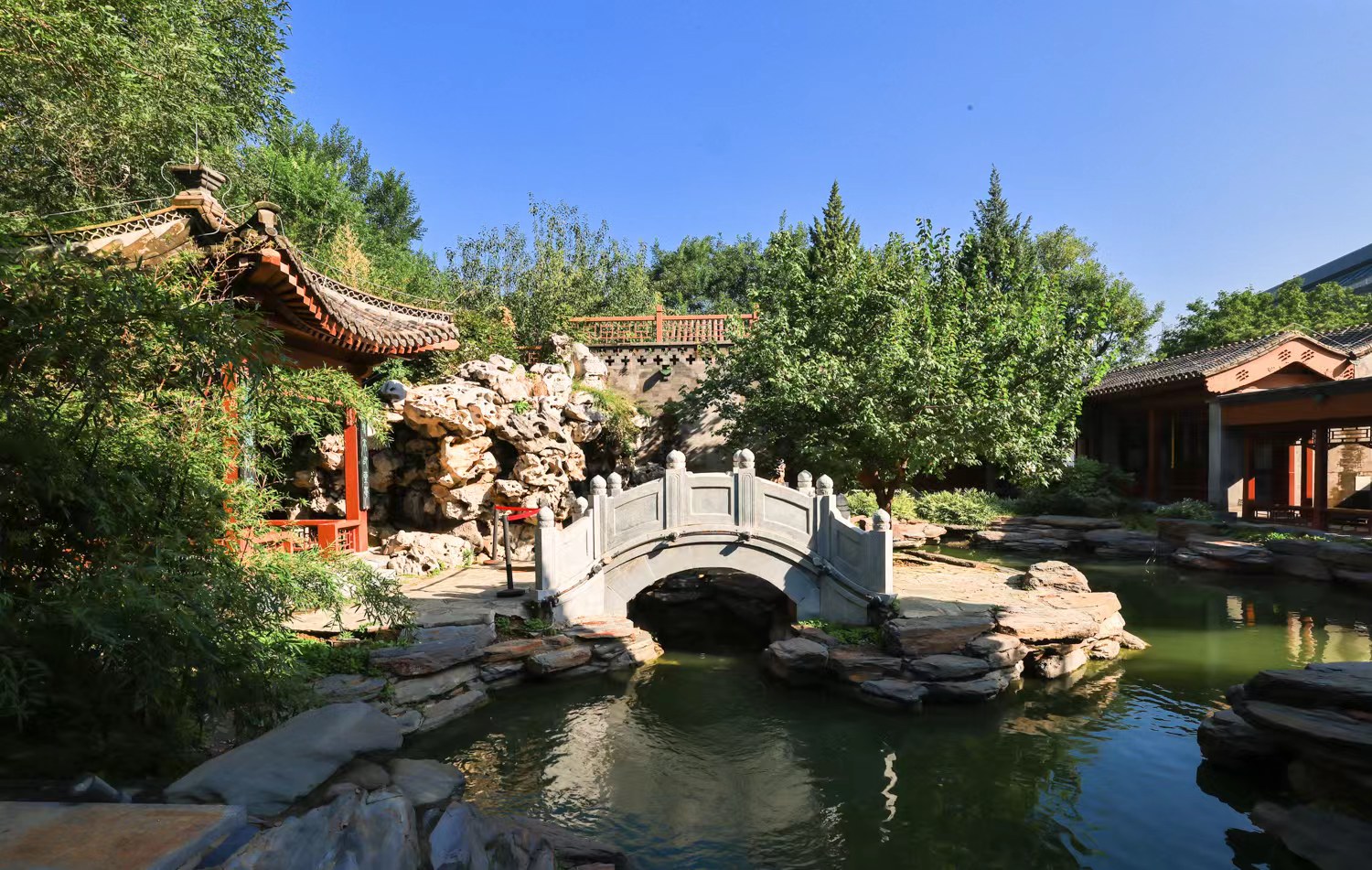 当脚步悠闲地晃荡到半亩园时,若是觉得时间充足,便可停下前行的步伐,留在园中小憩一会儿,亭台,拱桥,流水,竹石,每一置景的恰到好处都让整个园子显得别具特色。