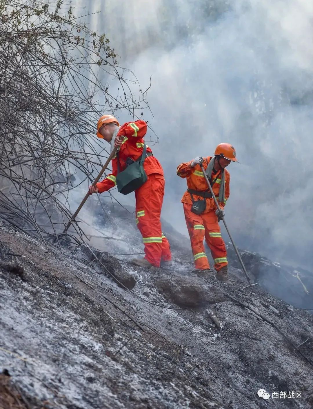 现场,党员骨干冲锋在前,叫响“跟我来、跟我上”战斗口号,全体官兵发扬连续作战、不畏生死的战斗精神,顶着浓烟、冒着高温,对烧焦的树干及草木灰较多的地方仔细试温,逐一排查暗火点,不放过任何隐患。目前,涪陵火情已得到有效控制,南川火情正在有序展开扑救中。