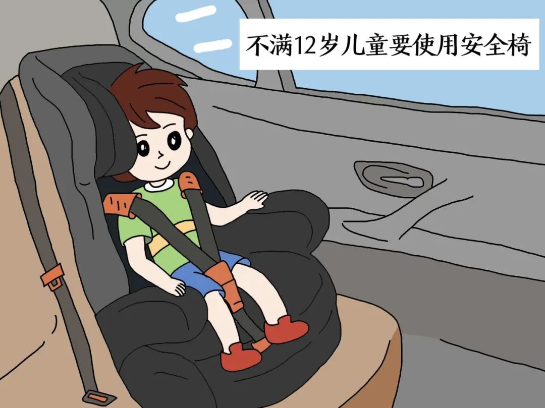 家长带孩子出行时要让孩子坐在车辆后排,系好安全带,不满12周岁儿童要使用安全椅,同时要看护好孩子不要让孩子坐在副驾驶,乘车时不要将头或手伸出车外,更不要将孩子单独留在车内。