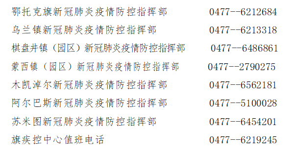 鄂托克旗疫情防控24小时值班电话