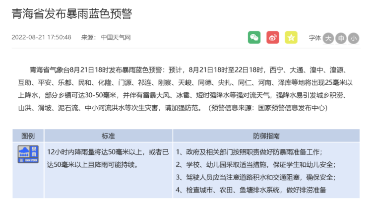 青海省发布暴雨蓝色预警