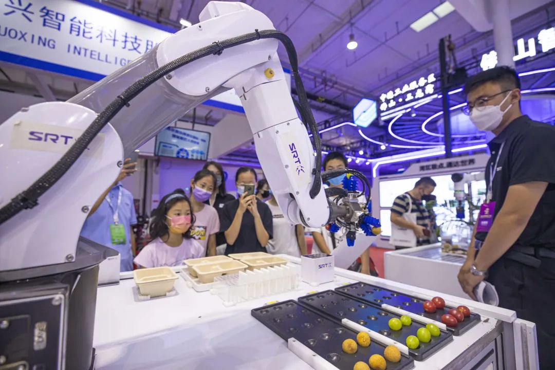 在SRT展台上,已经被机器人反复抓取了两天的葡萄珠没有任何撞击、刮蹭的痕迹……“这证明着我们软体机器人的硬核技术实力。”SRT相关负责人说。柔软的机械“手指”可以夹起不规则物体,这种看似软绵绵的机器人,其实是由特种材料制成的,辅以编程技术,机器人也能“以柔克刚”,轻松抓起不规则物体。SRT这种“特种材料+技术”结合的软体机器人已经应用于医疗、康复等场景。