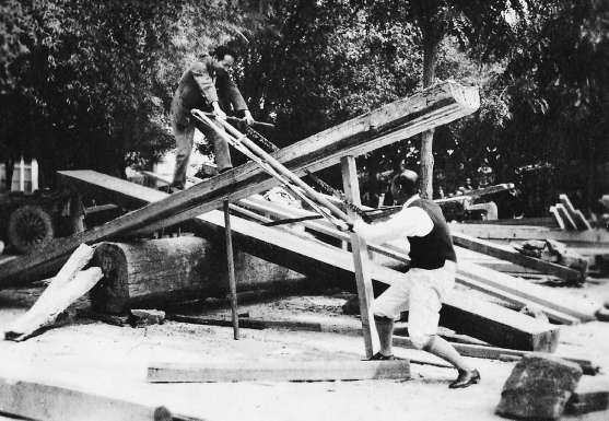 1920年,清华园内大兴土木,赵元任旁观后大感兴趣,与工匠一起锯木头。