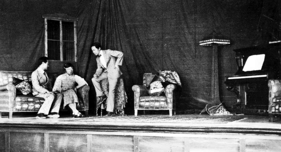 擅长多种语言的赵元任,在北京期间还积极参加国语统一运动。1927年,他将英国作家米尔恩的《坎伯利的三角恋爱》进行改编,用白话口语翻译,改成了剧本《最后五分钟》,并亲自导演。该剧后来在清华大学礼堂公开演出,并在赵元任的镜头中留下了珍贵的演出画面。