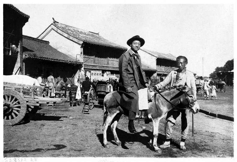 1920年9月的一天,赵元任到城里参加国语统一筹备会,没赶上火车和其他交通工具,只好雇了一头毛驴。好久没有骑过驴的他三分钟就摔了下来。到了西直门,赵元任自拍了骑毛驴的样子。他在日记中写道:“不知是因为用三脚架自拍照相看了稀奇呢?还是看着一位穿西装的人骑驴稀奇呢?很多好奇的人围着看。”