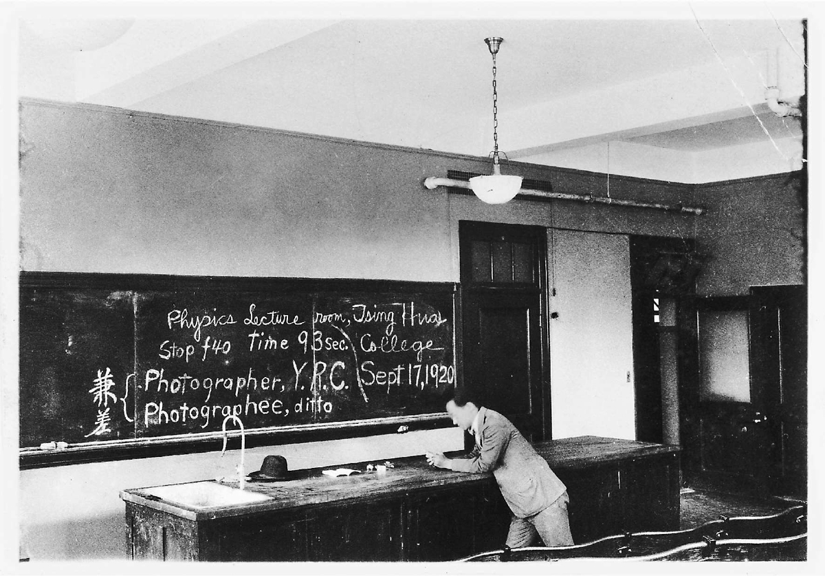 1920年,赵元任留学后第一次归国在清华任教。赵元任在黑板上写下:“物理课讲授,清华学校,1920年9月17日。兼差:摄影师,赵元任;被摄者,同一人”。