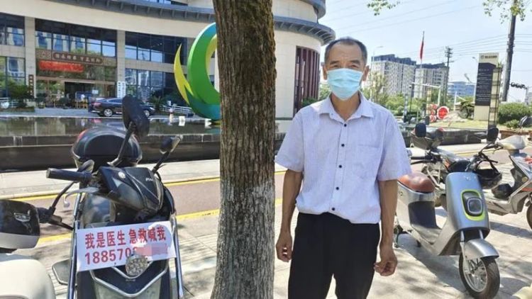 等待期间,吕三良多次询问对方的单位与姓名,但他只是一个劲说救人要紧,避而不答。但是,吕三良记得,好心人的电动车头有一块牌子,上面写着“我是医生 急救喊我”。