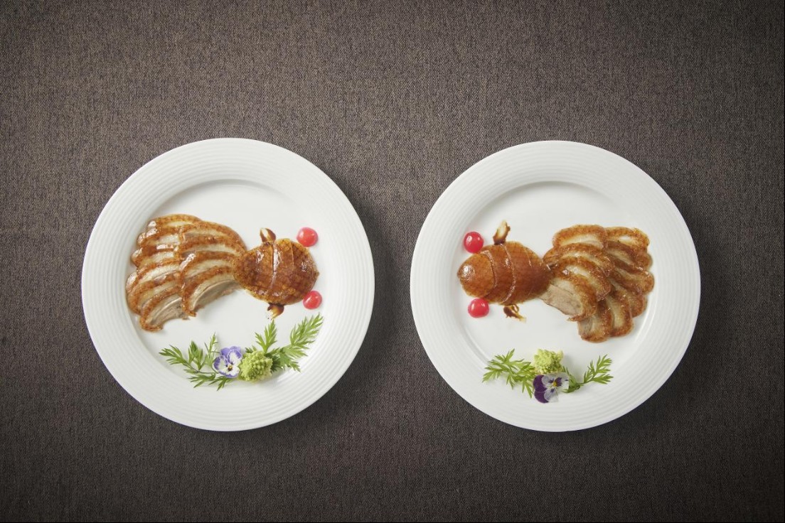 “三楼餐厅宴请的客户会比较多,我们会给客人布置专属的场地,包括婚宴、寿宴、生日宴、百日宴等等,为客人量身定制,比如,可以给客人提供烤鸭鸭皮题字服务,求一个好的寓意,烘托宴会的气氛”。