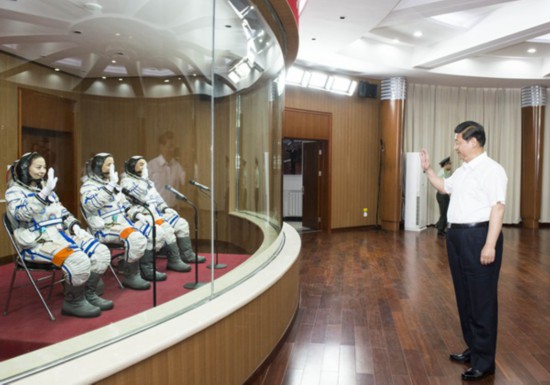 2013年6月11日,刚刚从国外结束访问回国,总书记又来到酒泉卫星发射中心观看“神十”发射。