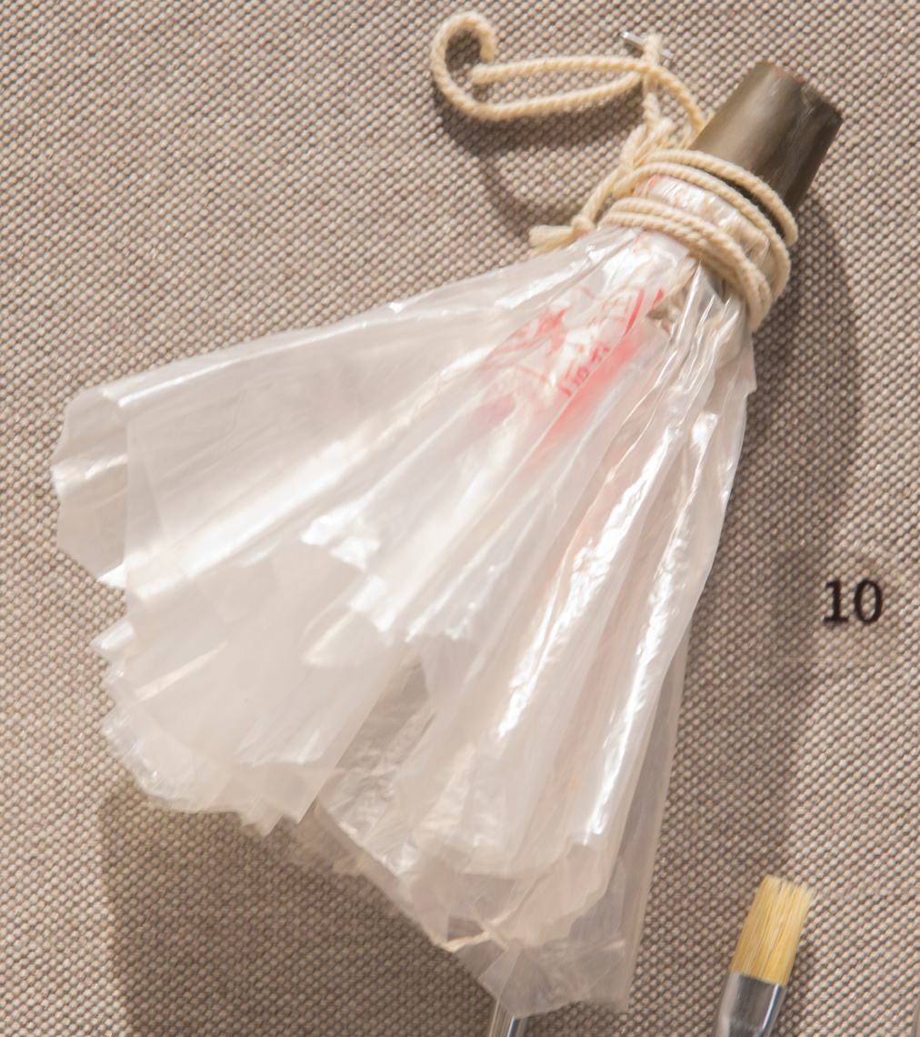 传统建筑彩画所用工具和材料不同于一般绘画。从丈量建筑构件,到最终完成绘制,这二十多道工艺所用工具材料繁多,有纸、笔、刷、尺、大白粉、滑石粉等。传统工匠人手一套工具,他们发挥聪明才智,在施工过程中不断对工具进行改良。