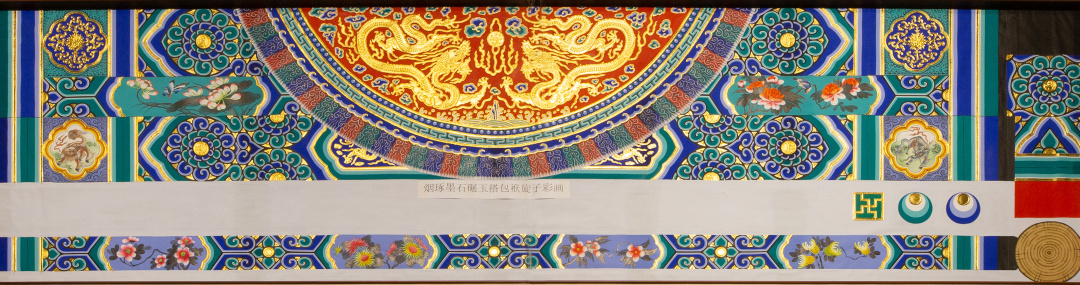 本次展览包括200余件展品,通过传承人手绘彩画小样,拓稿原件,文物修缮中的建筑彩画残件,非遗传承人自制工具等等,时间跨越宋、元、明、清和当下,从彩画的构图、色彩、纹饰、工艺、保护等方面讲述色彩斑斓的木衣锦绣。