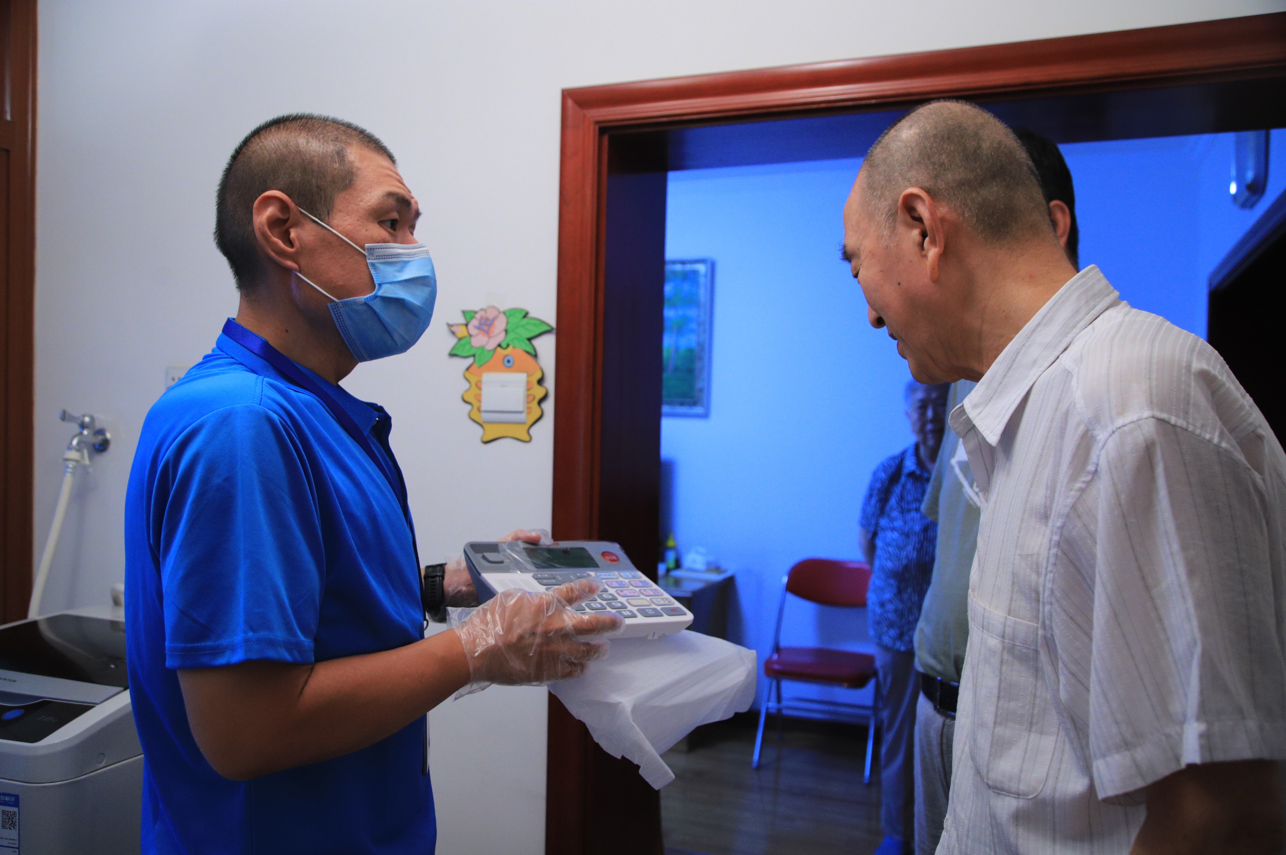 近日,家住西城区车站东街13号院的丁大爷,按响了电话上“一键呼”的按钮,向养老驿站预约助浴服务。接到电话后,白菜湾养老驿站的工作人员便推着老年助力车,来到丁大爷家中,接送他到驿站,洗了一次舒服的热水澡。