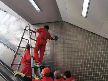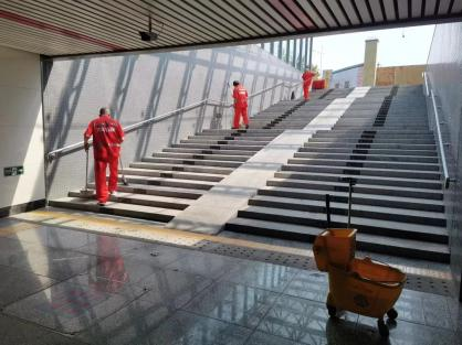 清洁通道内台阶、扶手、地面、墙面、雨棚,确保地下通道卫生“无死角”。