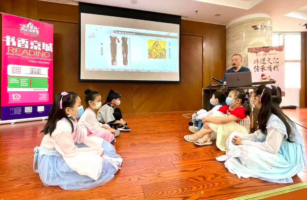 本周末,非遗传承人、东城区文联民间文艺家协会的老师们应邀来到王府井书店,为小读者们讲述非遗文化历史、亲自传授非遗技艺。相约古琴艺术、葫芦绘画体验、泥塑“防疫小卫士”、“叶画中轴线建筑”、“扎风筝”等体验项目,让孩子们异常兴奋。