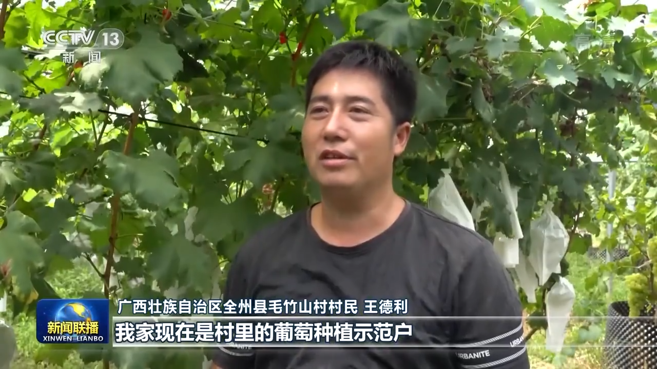 广西壮族自治区全州县毛竹山村村民王德利:去年总书记来我们家,嘱托我们注重学习科学技术,用知识托起乡村振兴。我家现在是村里的葡萄种植示范户,去年光葡萄一项,我家就收入10多万元。
