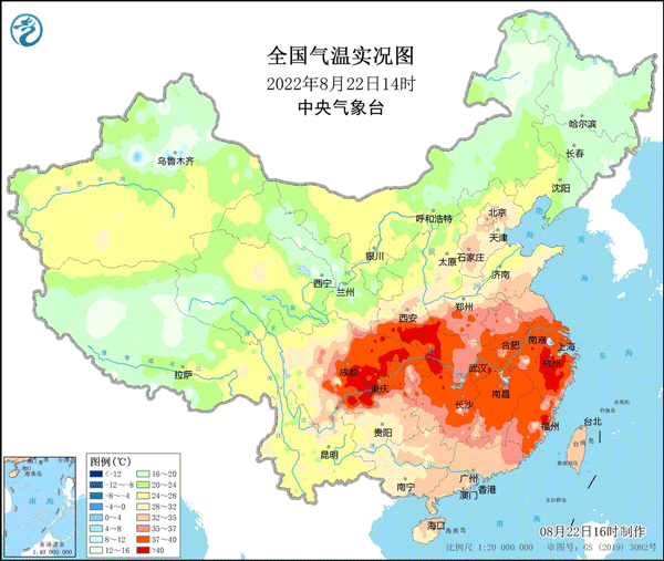 (注:截至29日17时重庆沙坪坝最高气温32.6℃,但由于气象上统计日最高气温是从前一日晚上20时起算,而沙坪坝站28日20时之后最高气温还有35℃+,因此气象上统计29日重庆仍算为一个高温日,由此算,重庆连续高温日数自7月24日-8月29日共37天)