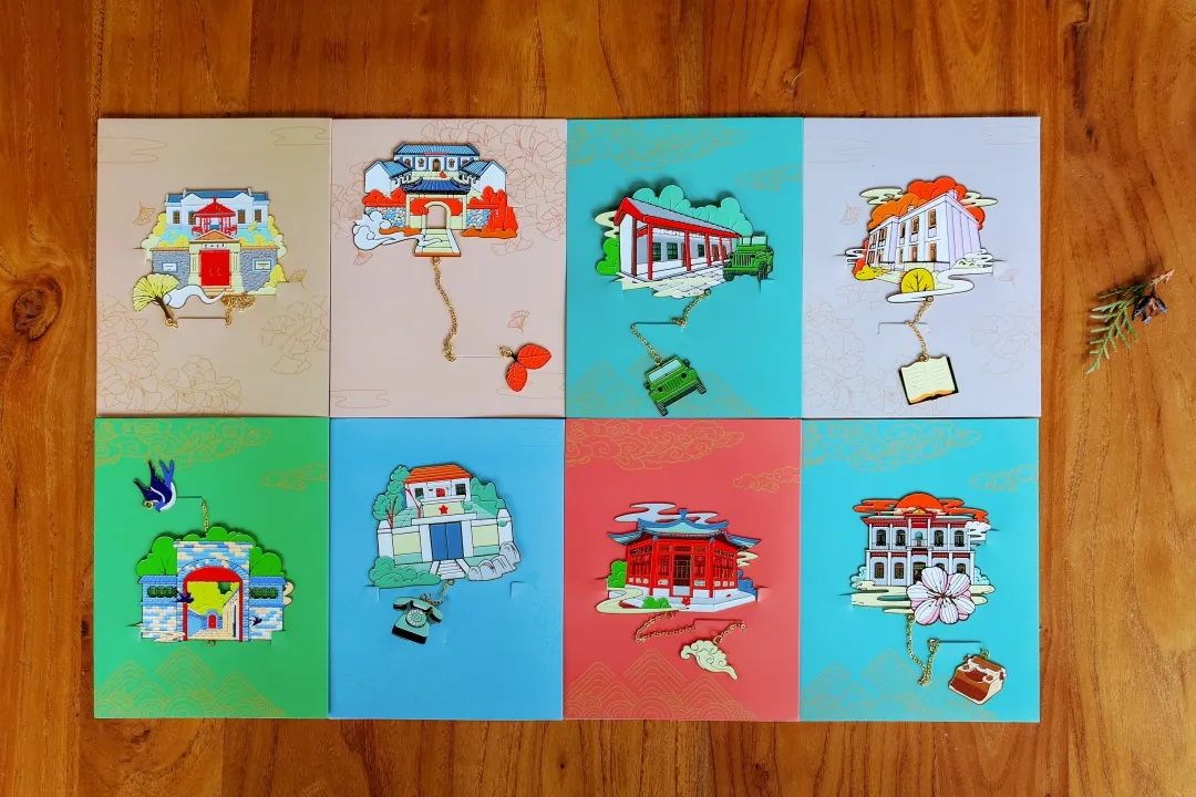 此外,本次红色文创系列还推出以香山革命纪念地(旧址)建筑和毛主席经典诗词为主题绘制的插画明信片、胸章、冰箱贴、钥匙链、等产品,生动展现了香山革命纪念地旧址的样貌。