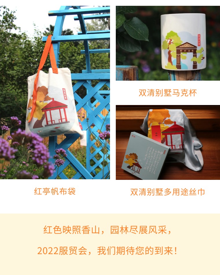 今年,香山公园推出两款新包装饮用水——香山之春、香山之秋。香山之春以春季双清别墅景物为主体,搭配香山春季重要的历史文化及植物景观——杏花、红鱼,浓重的红色文化搭配动感的动植物元素,赋予画面清新活泼的时代气息。