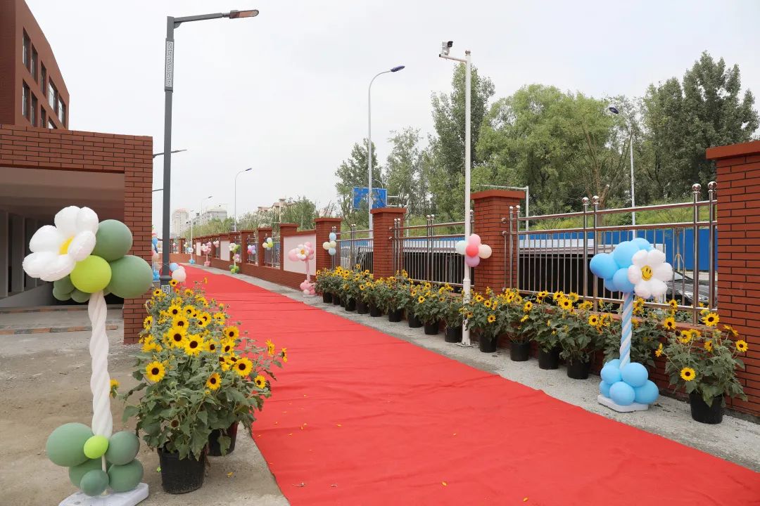 首都师范大学附属顺义实验小学向阳分校铺设了迎新红毯。