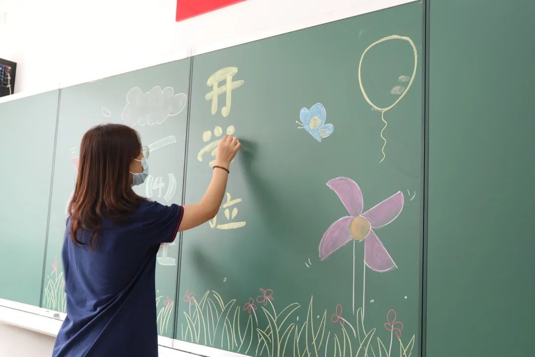 老师正在绘制迎新板画。