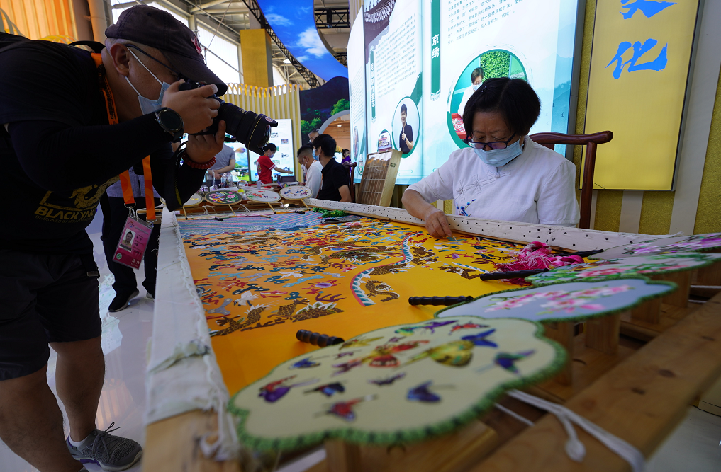 看一段京西太平鼓,端详潭柘紫石砚,再和精美的京绣合个影,在体验区,参观者们充分享受着视觉、听觉的盛宴,赞叹非遗技法的精妙,对门头沟区的区域特色有了更直观的了解。
