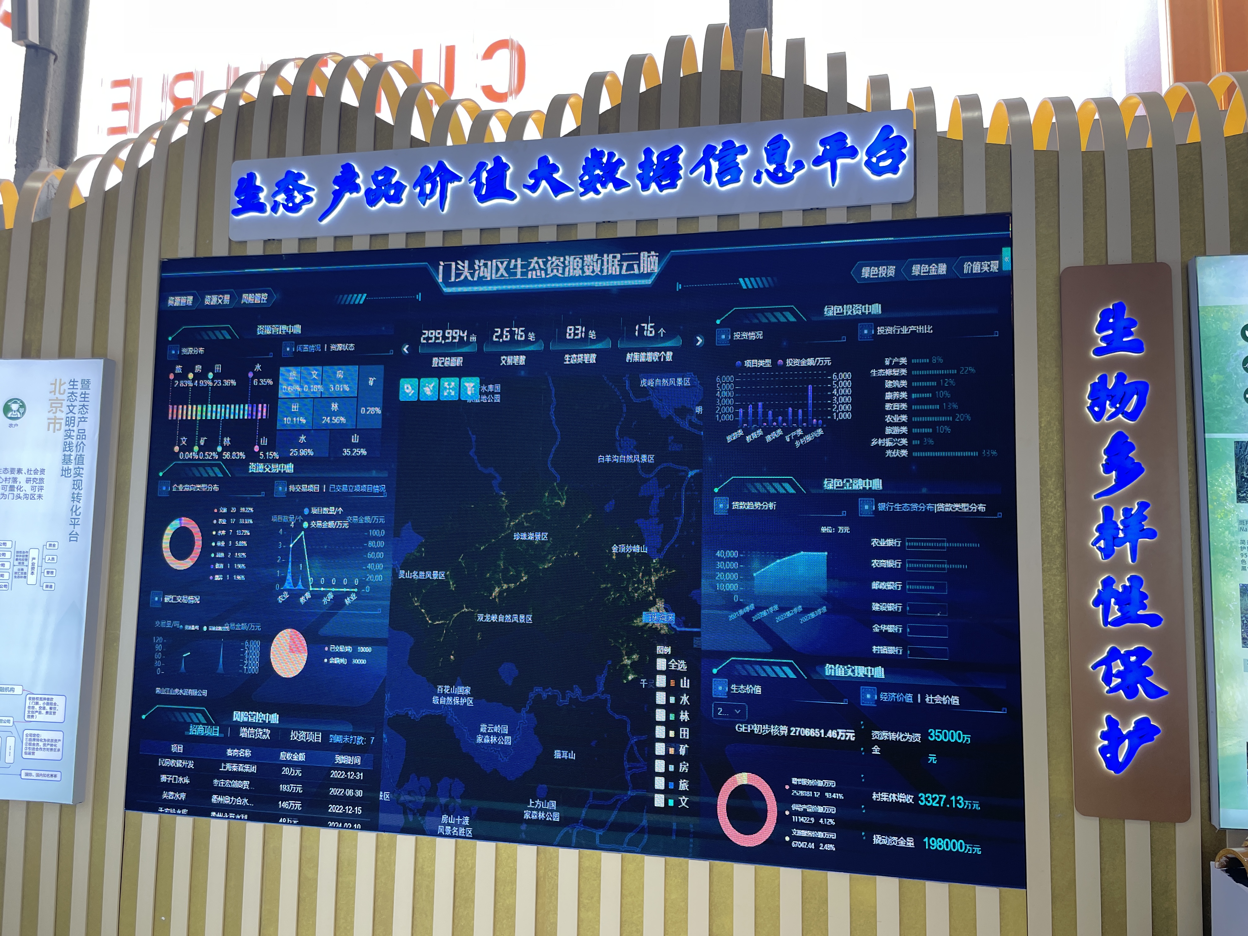 走进展区内,一张生态产品价值大数据信息平台动态效果图格外醒目,图中以灵山、百花山为重点区域,通过数据和图片展示的方式,方便观展者更直观地了解门头沟区各类稀有动植物资源和生物多样性保护的显著成果。