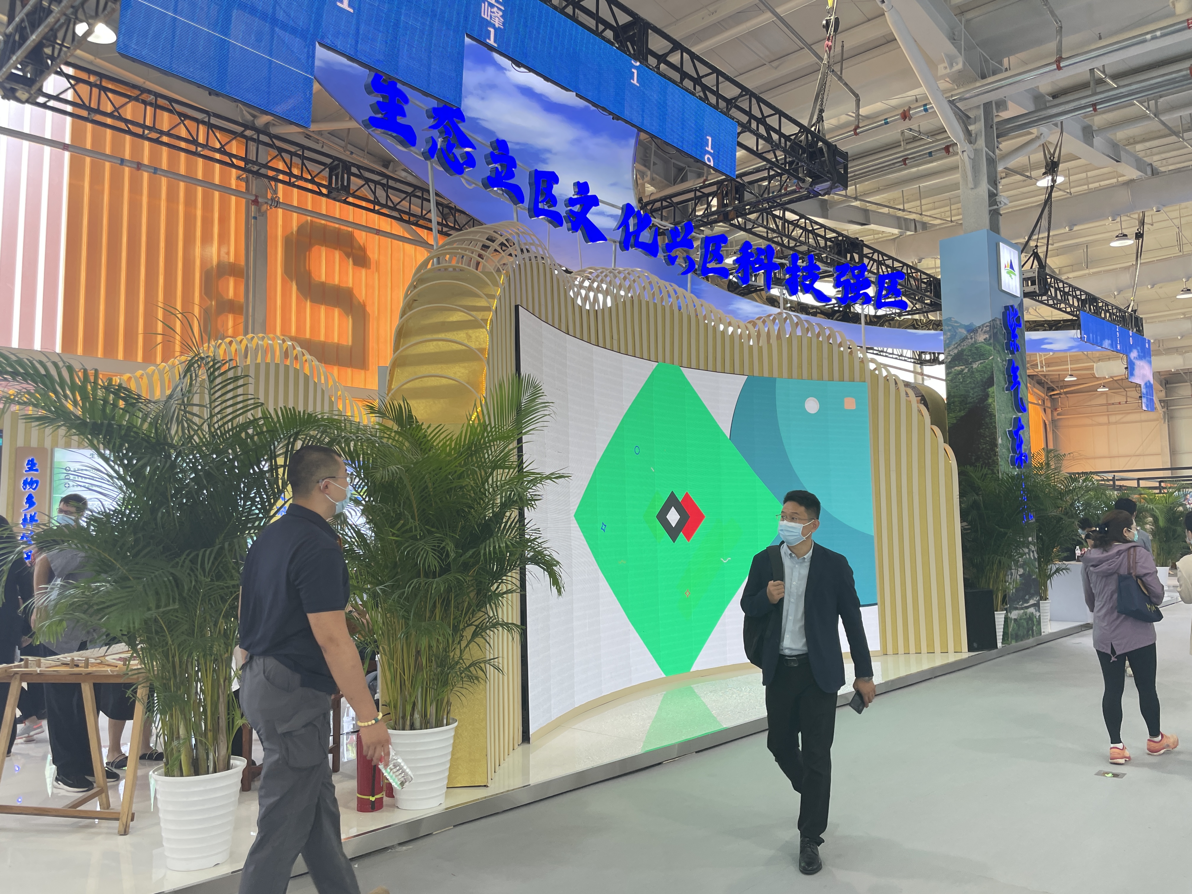 在2022年中国国际服务贸易交易会上,门头沟区以“生态山水 紫气东来”为主题亮相首钢园文旅服务专题板块,展区围绕“生态立区、文化兴区、科技强区”的发展战略,多角度呈现近年来门头沟区积极践行“两山理论”形成的“好山好水好生态”的生态文明建设成果。