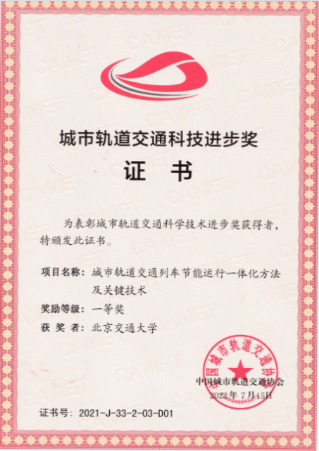 近日,2021年度城市轨道交通科技进步奖金榜揭晓,北京交通大学共获科技进步奖7项,其中,主持成果获一等奖2项,参与成果获一等奖4项、二等奖1项。
