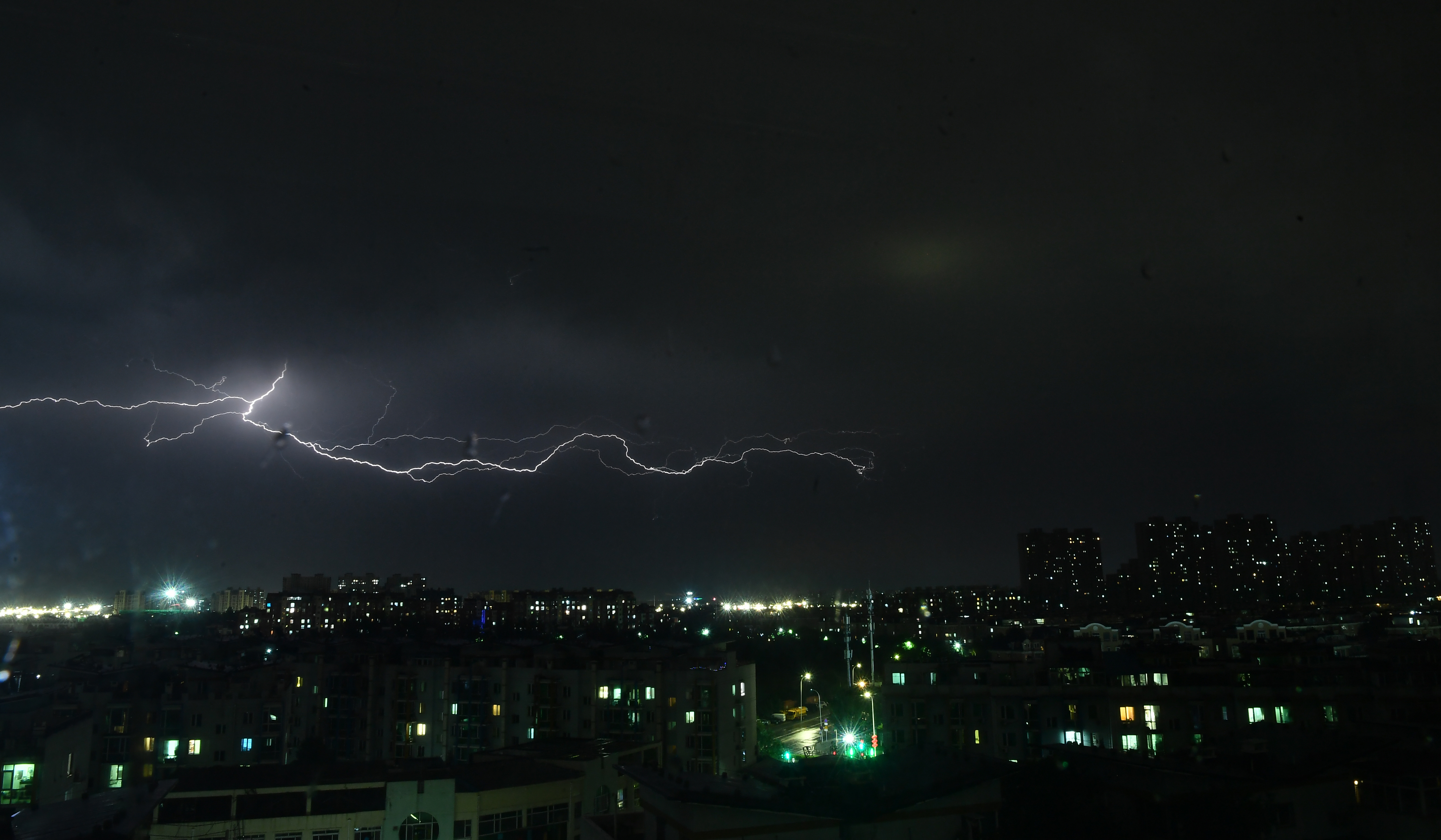 2022年9月4日夜,闪电从通州上空划过。当日,北京迎来雷阵雨天气。