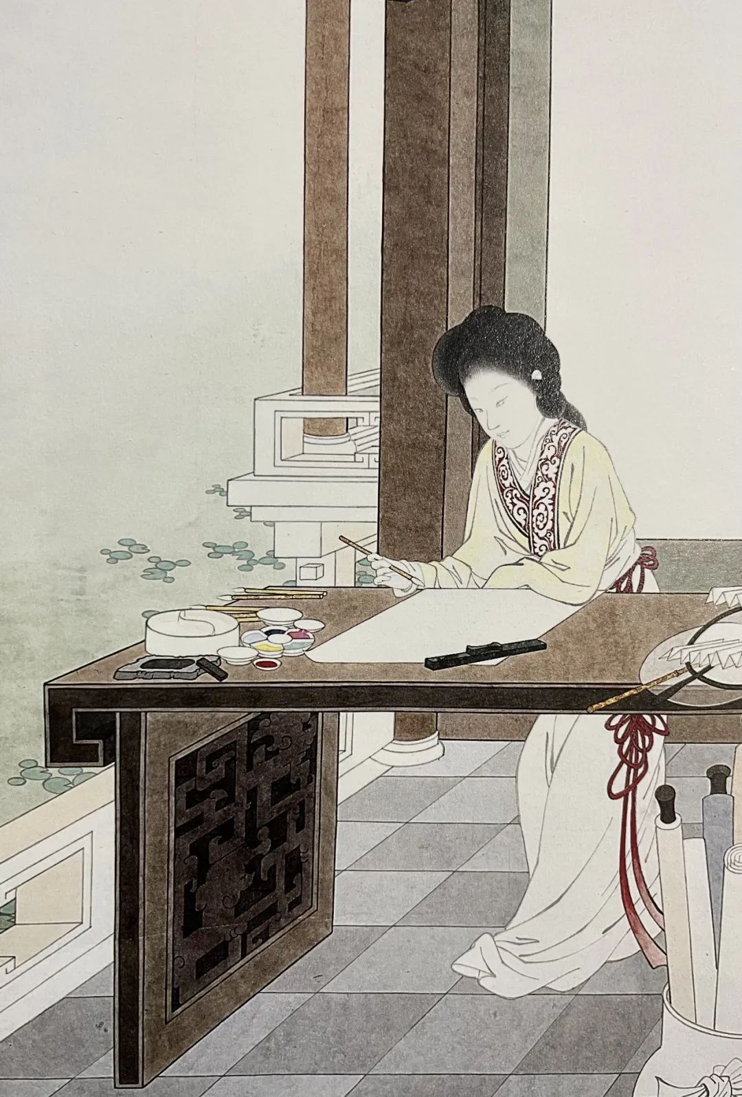 这是工笔仕女画大师王叔晖先生的绝笔之作——红楼梦系列人物之《惜春作画》,王叔晖生命中最后的时光,亦和她画中的惜春一样,在伏案作画,然而,画未终,人先去。