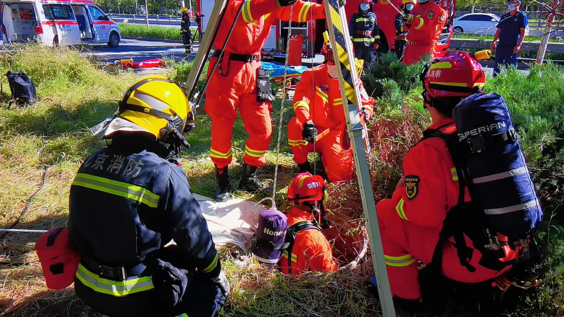 9月5日上午8时36分,北京市大兴区消防救援支队接到总队指挥中心调度命令,芦求路附近有一名人员坠井需要救援,黄村消防救援站立即赶赴现场处置。
