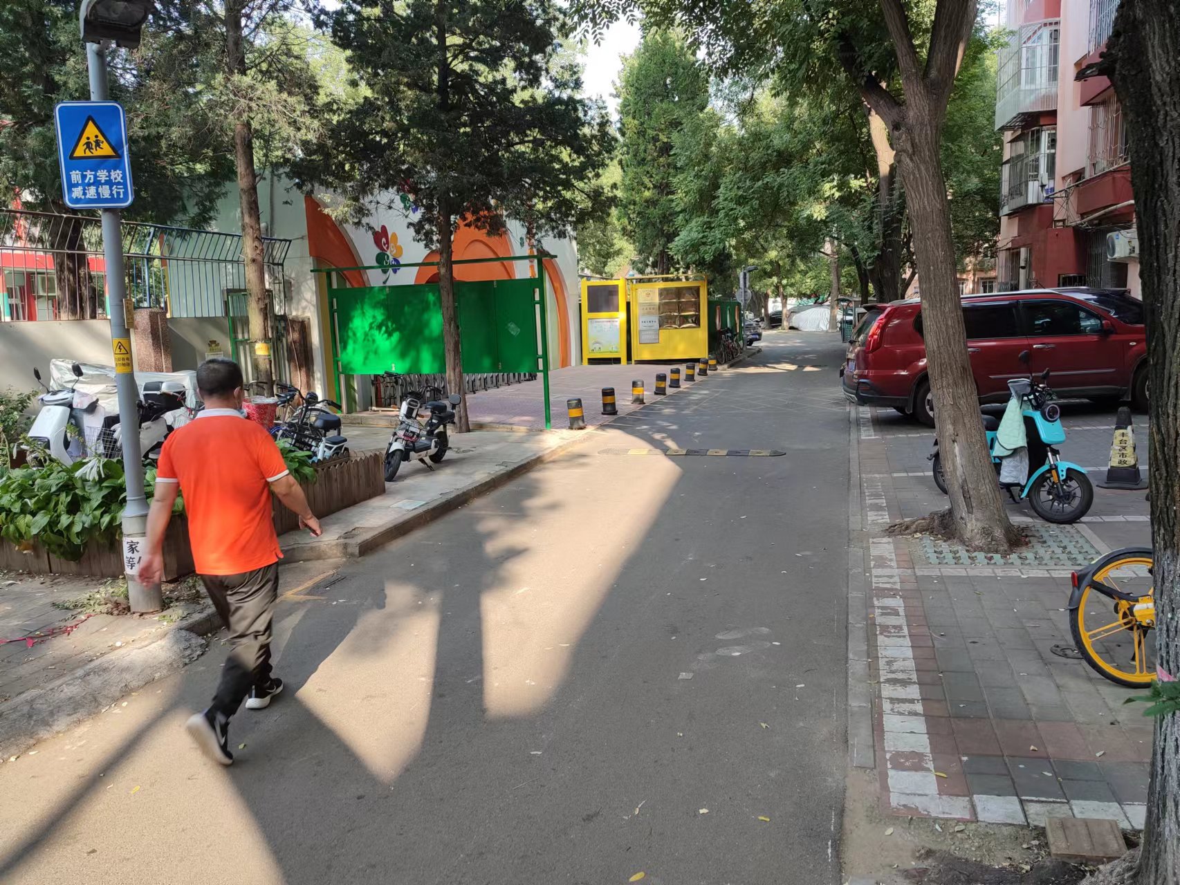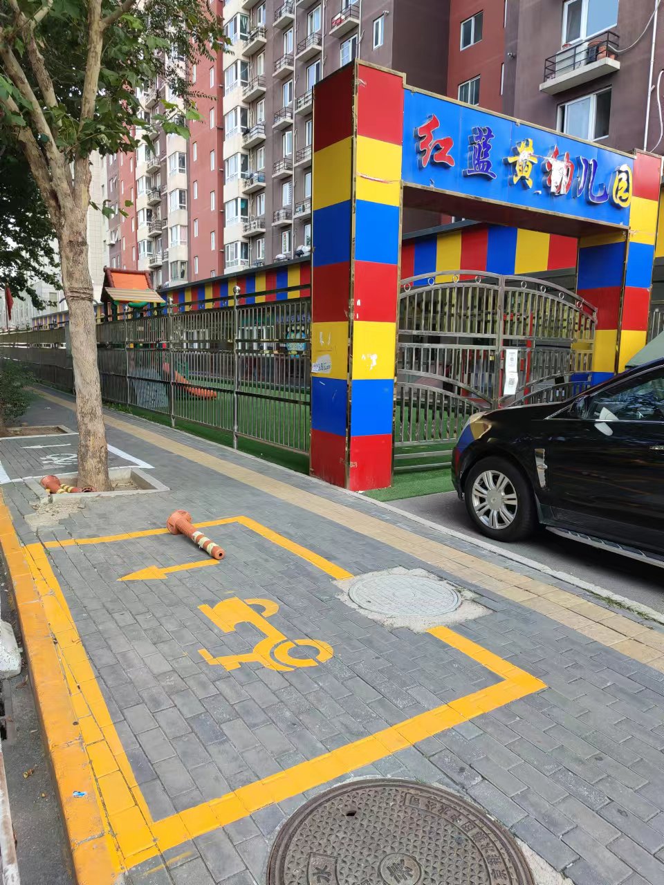 芳群园第二幼儿园出入口50米内,现在设有非机动车停车区