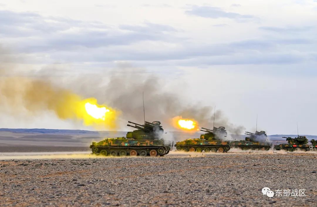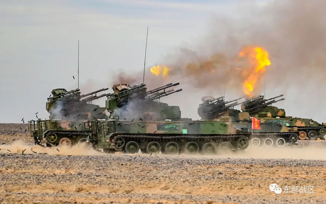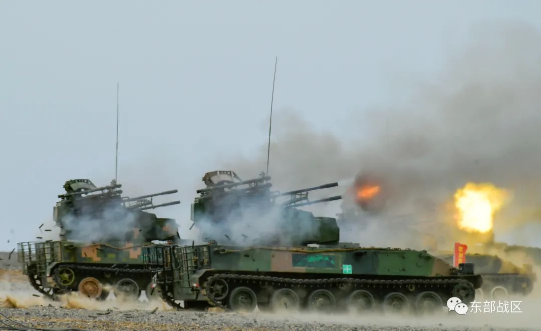 多辆防空武器驶入射击阵位