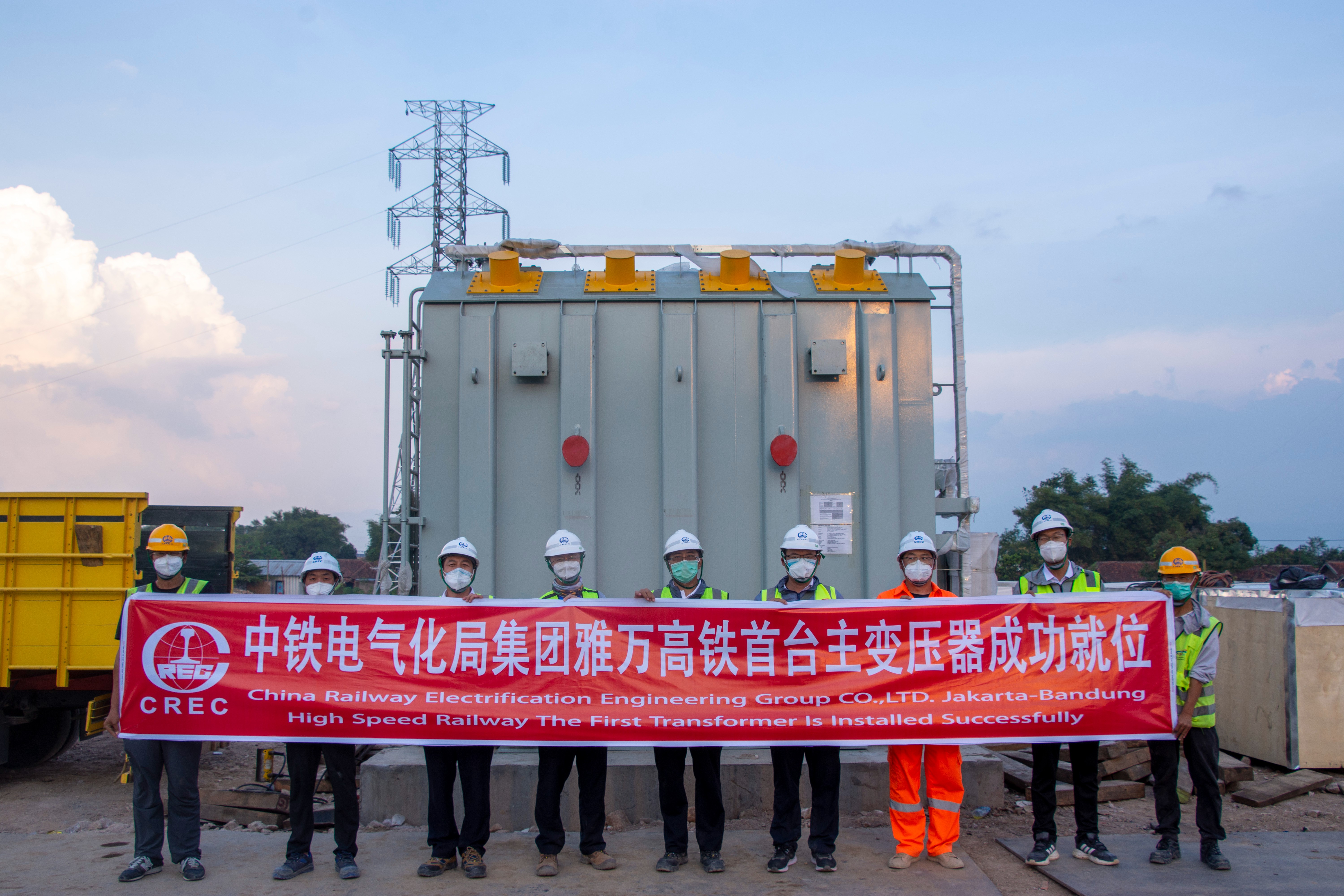 9月6日,企业承建的雅万高铁首台牵引主变压器在印尼德卡鲁尔变电所成功安装就位,雅万高铁“站后”四电工程牵引变电专业正式进入设备安装阶段。