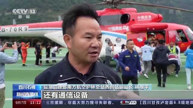 应急管理部南方航空护林总站西昌站副站长 林继平:医疗设备、通信设备、医疗物资,还有各方面的医疗救护人员,伤员今天还要继续转出。截至现在,今天已经运了大概20吨物资到了草科乡。昨天我们一共转运了35名伤员,其中10名重伤员,33名医务人员。我们从石棉县到草科乡(空中救援通道)20分钟以内就能到,现在地面无法通车,如果说是通车的话,也有可能要4到8个小时才能到达草科乡,(空中救援通道)大大节约了时间。
