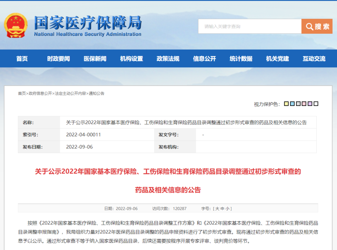 6日,国家医保局发布公告,对2022年医保药品目录调整的药品申报资料进行了初步形式审查,共有344个药品通过初步形式审查。