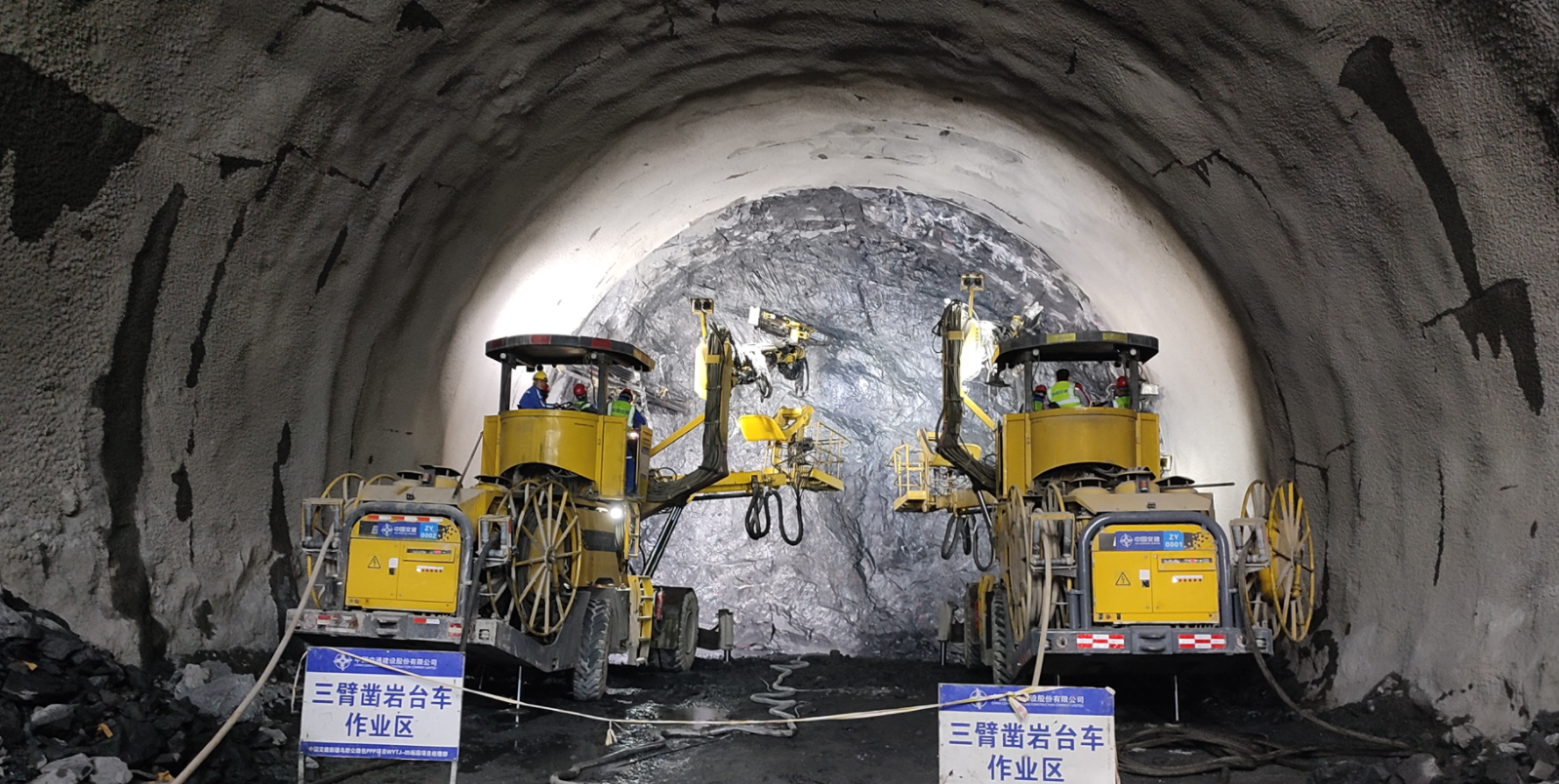 2021年11月底,左右主洞开始穿越F6断层,建设团队高度重视,采用C6钻机进行超前物探,对前方洞身围岩破碎程度、富水程度进行分析预判,制定科学合理的施工方案,采用国内先进全电脑三臂凿岩机进行钻爆开挖,机械换人、精准施工,降低施工安全风险,提高作业功效。