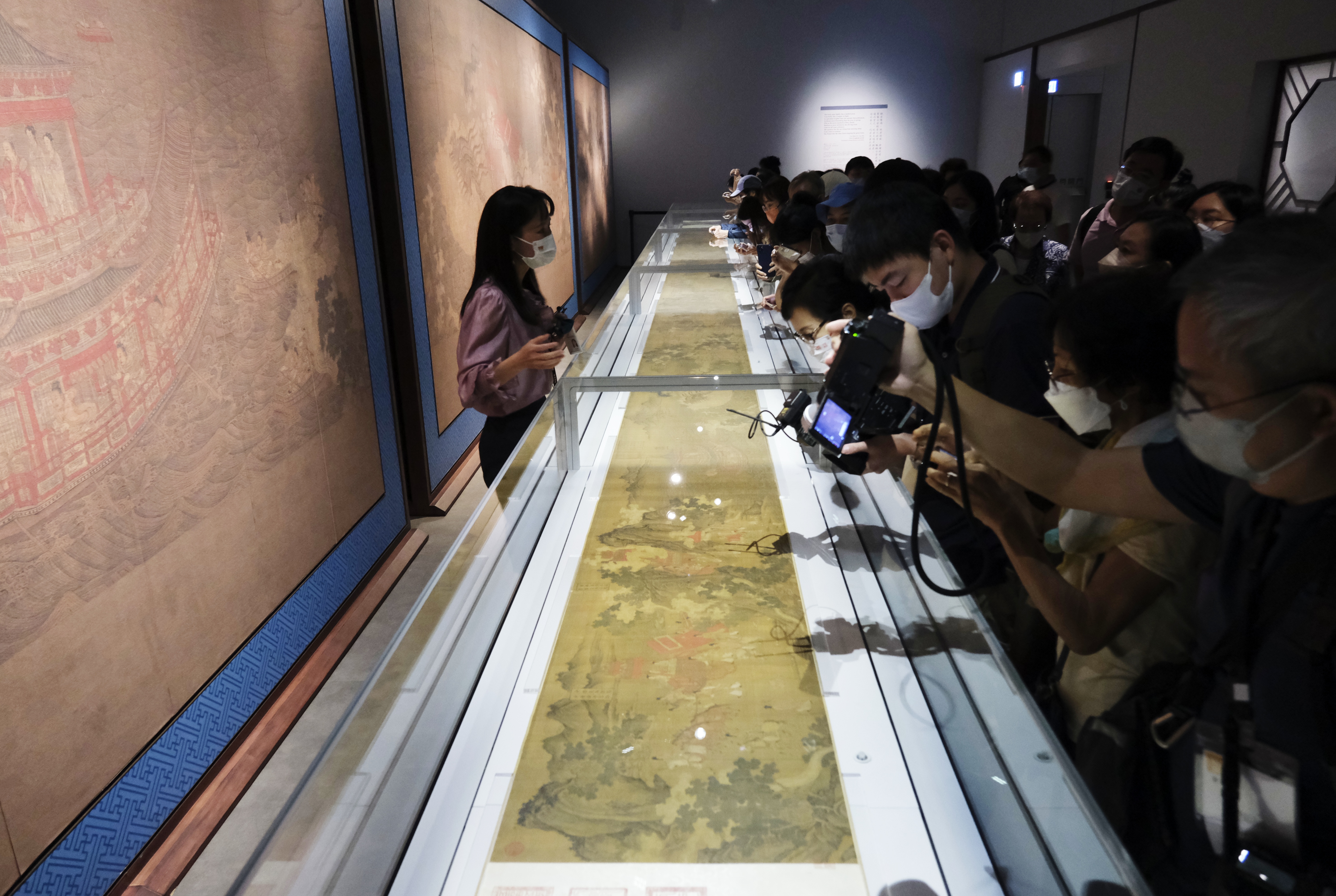 9月7日,在香港故宫文化博物馆,观众在参观《洛神赋全图》(南宋摹本)。新华社记者 王申 摄