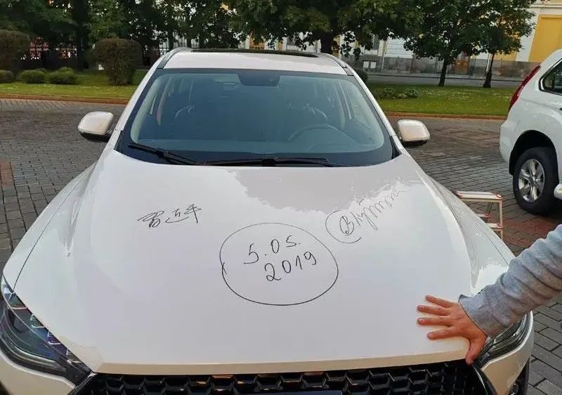 2019年6月5日,习近平到访莫斯科首日,克里姆林宫皇家庭院开进了3辆中国品牌的SUV和皮卡,这是长城汽车图拉州工厂刚刚下线的汽车,典型的“中国品牌+俄罗斯制造”。在锃亮的汽车引擎盖上,习近平和普京共同签下了名字。