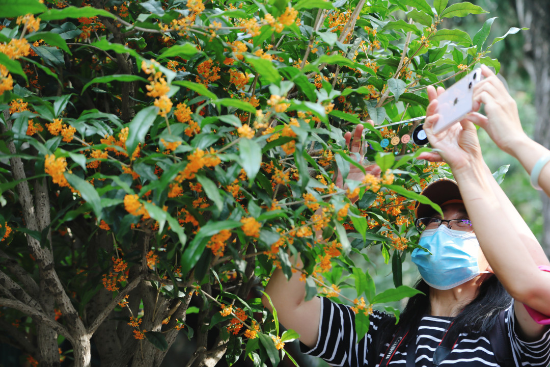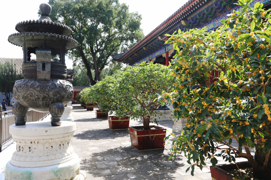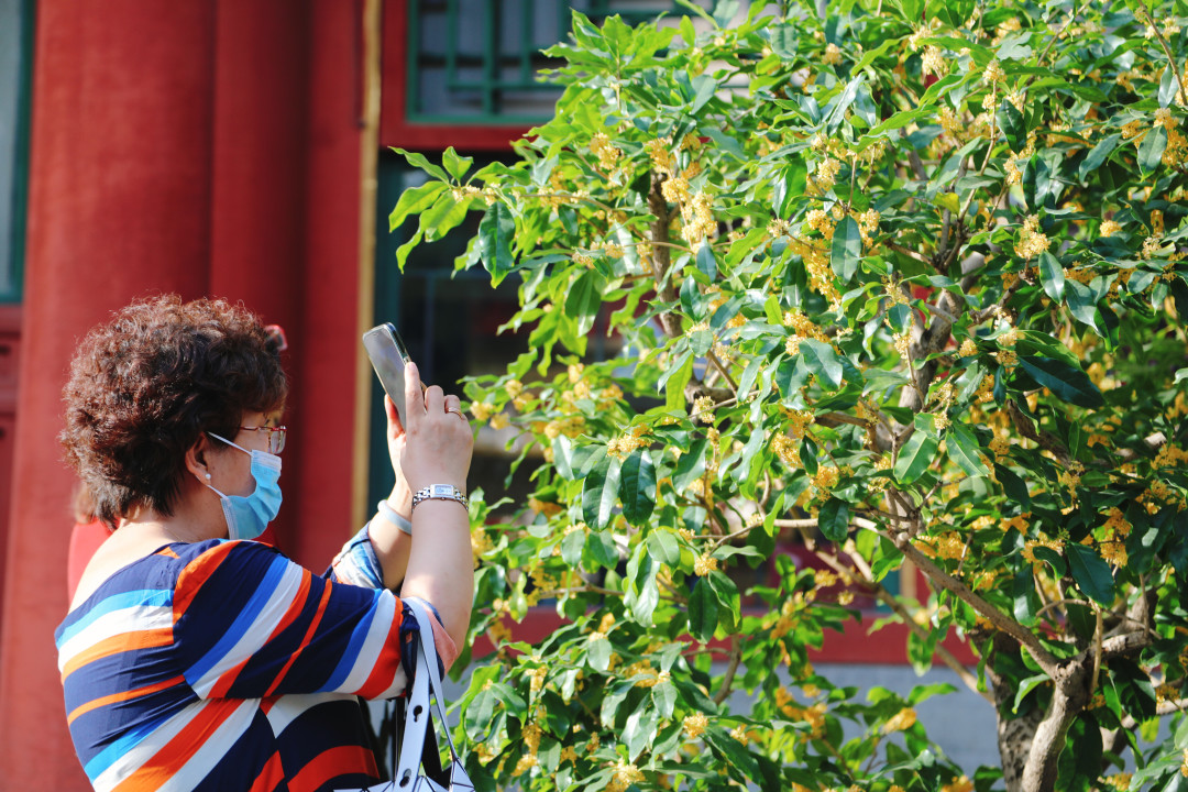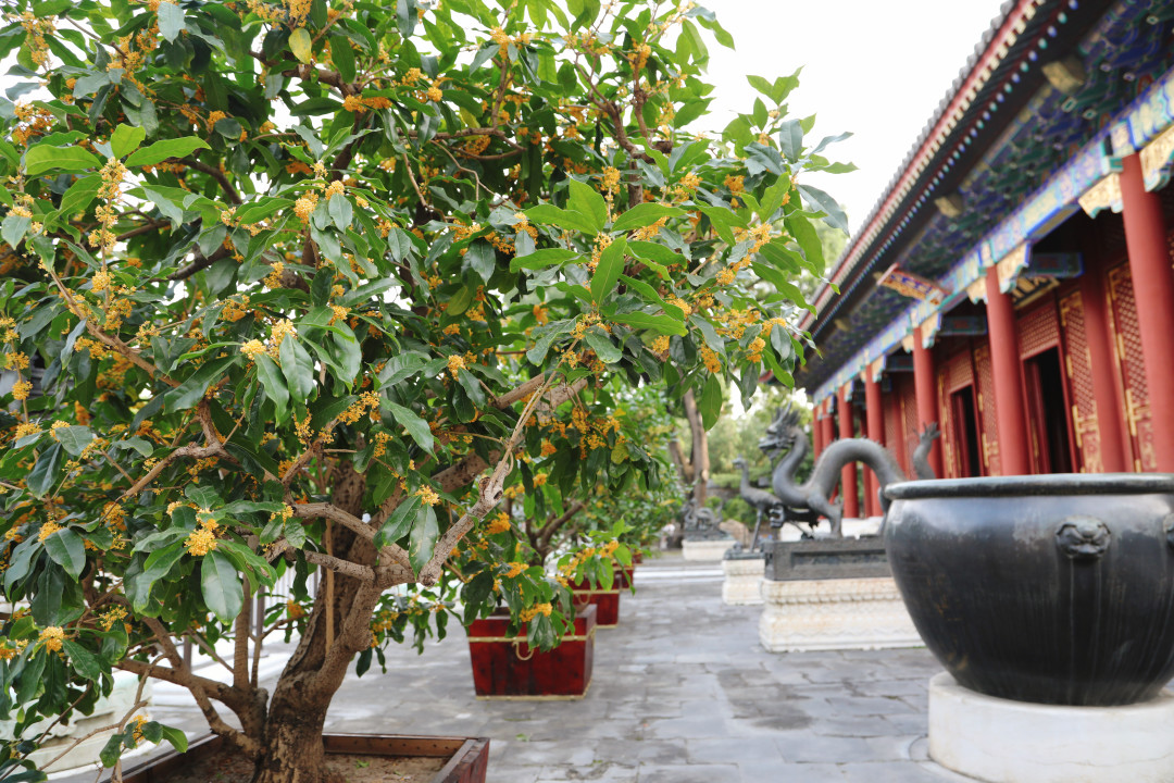 值此中秋之际,颐和园迎来了第二十一届“颐和秋韵”桂花文化展。上百盆盆栽桂花竞相开放,花满枝头,清香四溢,给颐和园的秋天增添了浓浓的节日氛围。