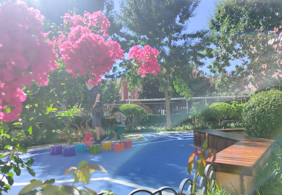 一岁半的牛牛在姥姥姥爷的带领下,兴奋地在卡通大象图案周围跑跑跳跳。“新修的儿童乐园就在家门口,颜色鲜艳,设计上也花了不少心思,建好后我们总带着孩子过来玩儿。”牛牛的姥姥脸上洋溢着笑容。